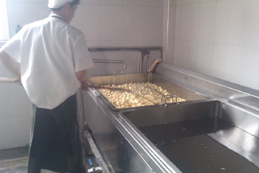 該機是在傳統電炸鍋基礎上添加油水分離機構和安裝了蒸汽加